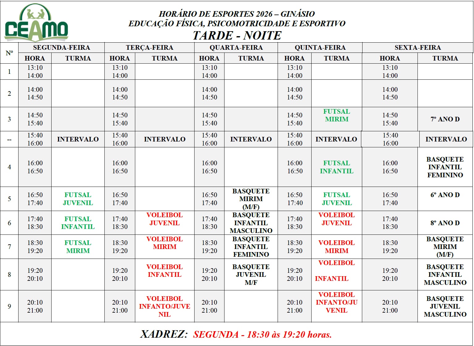 Horários